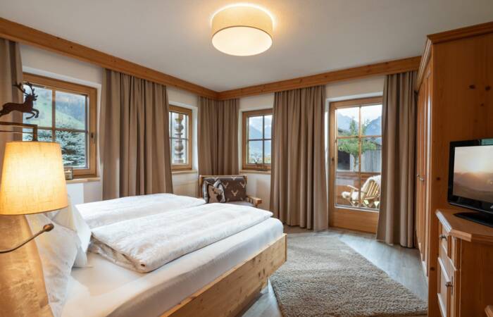 Gemütliche und heimelig eingerichtete Ferienwohnung für 2 bis 3 Personen im Tiroler Landhausstil, ca. 40 m², Morgensonne mit Blick Richtung Zell am Ziller und Nachmittagssonne mit Blick Richtung Mayrhofen taleinwärts